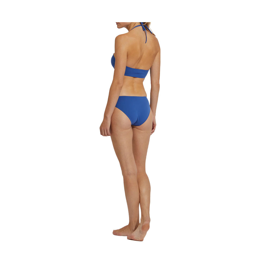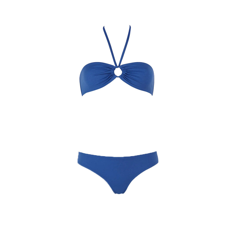 Two-piece swimsuit, consisting of a bandeau tied with a tie around the neck and classic, slightly low-waisted briefs. This material is composed of 83% polyamide and 17% elastane.