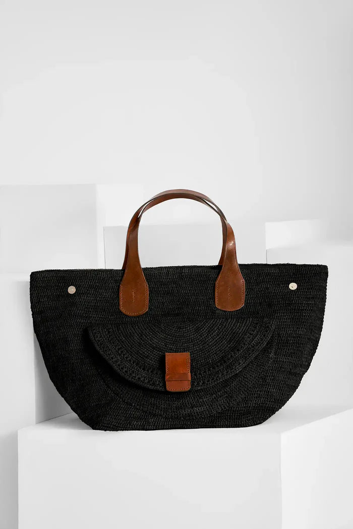 Laza II Raffia Tote Black