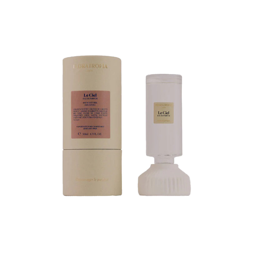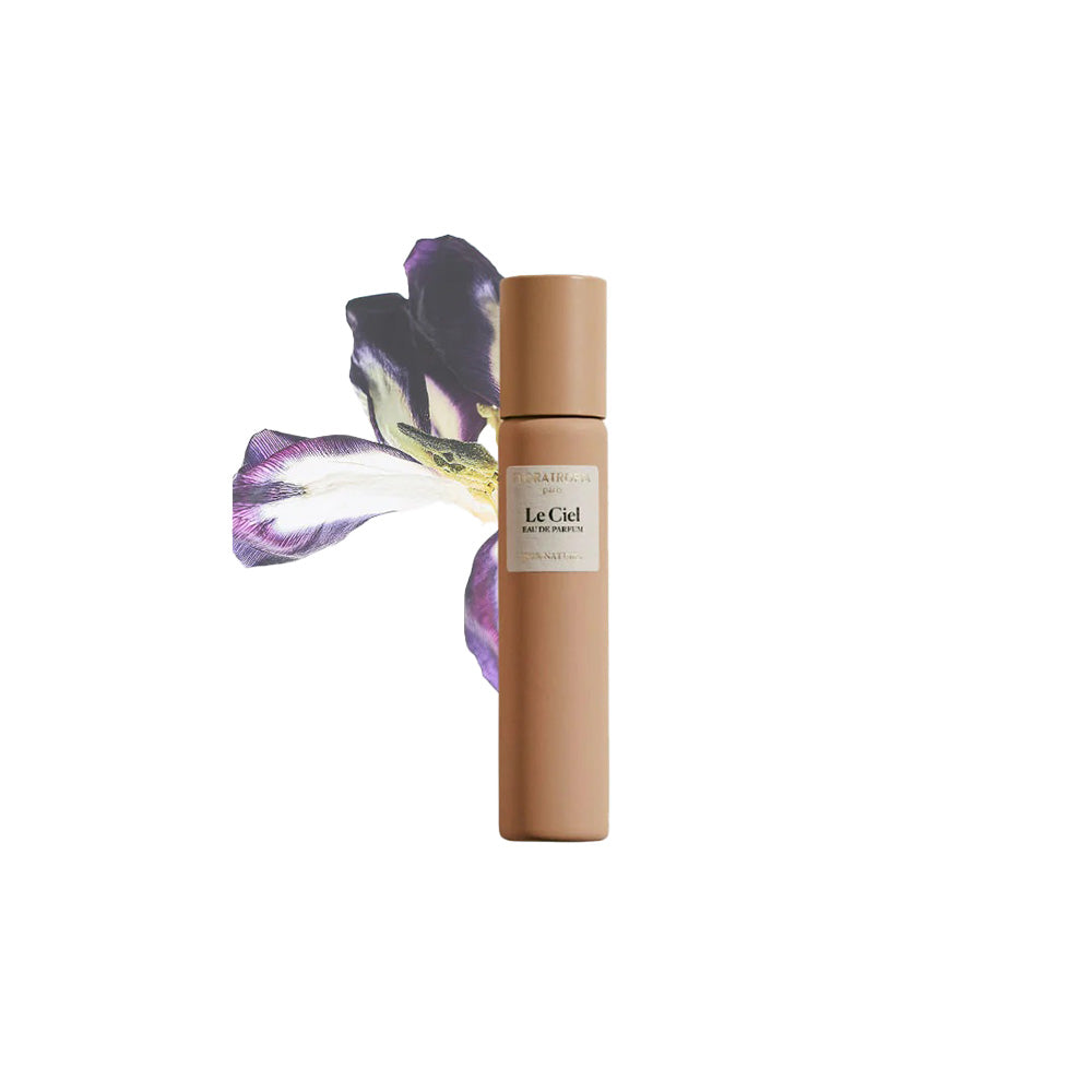 Floratropia’s Le Ciel is a refined 100% natural iris-centric Eau de Parfum that floats between soft florals and warm woods. It opens with airy notes of geranium, ambrette seed, and carrot seed, unfolding into a delicate heart of iris, osmanthus, and cassia flowers. The base of New Caledonian sandalwood and Venezuelan tonka bean adds a creamy, powdery glow that settles like a gentle spring breeze