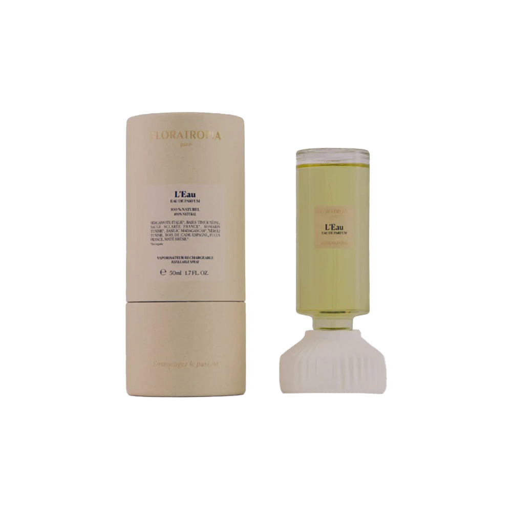 L'Eau by Floratropia evokes the tranquil essence of cool, shady spring water, revealing a mosaic of changing reflections, alternating between vegetal, floral, and mineral notes. It embodies resourcing simplicity paired with an unexpectedly intricate and complex aroma.