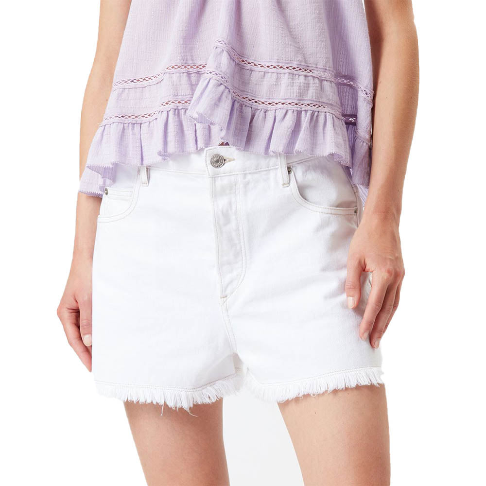 Lesia Shorts from Isabel Marant is a white cotton short. It has front pockets. It comes with Button and zip closure.