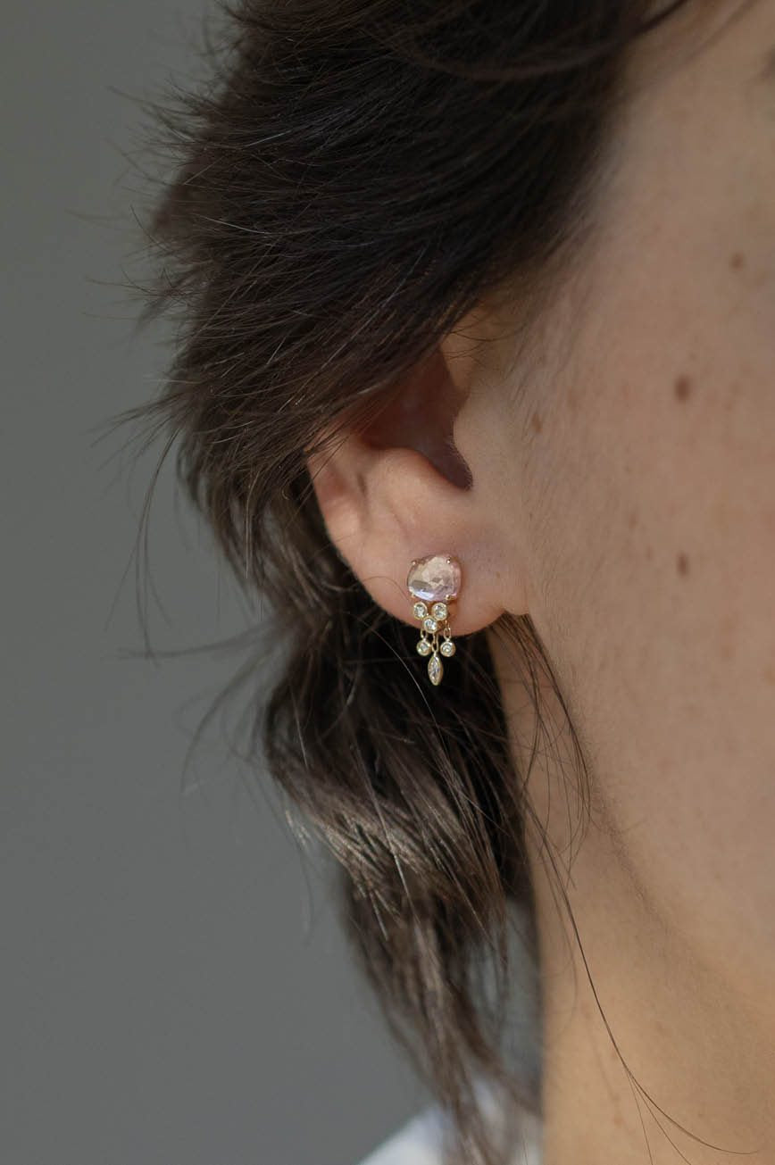 Light Pink tourmaline & Diamonds Jellyfish Single Earring