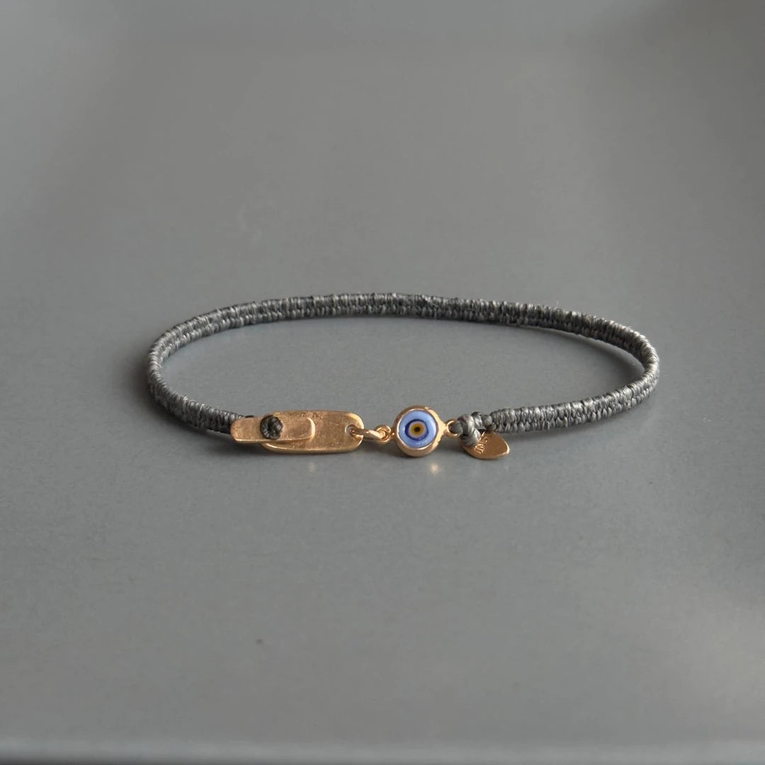 Woven waxed thread bracelet with 24k gold plated bronze and silver