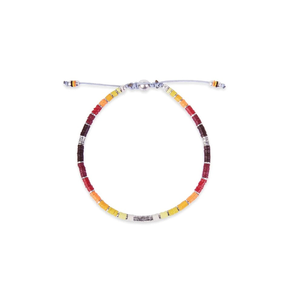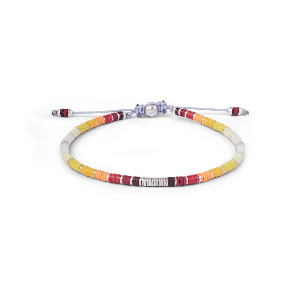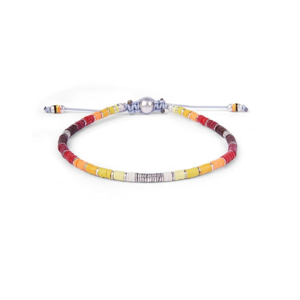 The Mini Rizon, a foundation piece that provides an addition of color to any stack, consists of 925 sterling silver and colorful African trade beads into a beautiful pattern. Wear paired with your favorite MAOR bracelets.
