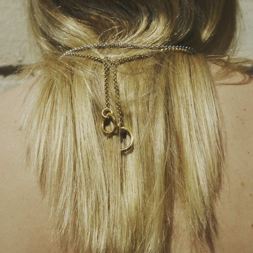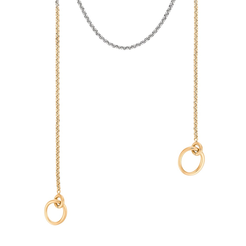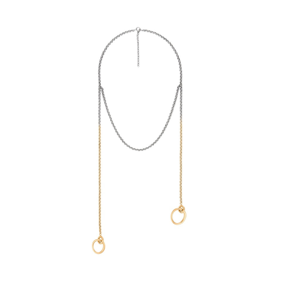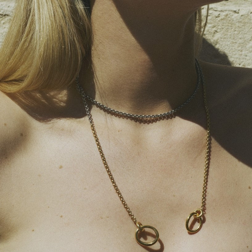 This Mini Symi Necklace by Charlotte Chesnais has a single chain wrap closely around the neck which is connected to a larger chain that continue dropping on each side and its fastening inspired by Symi Necklace.