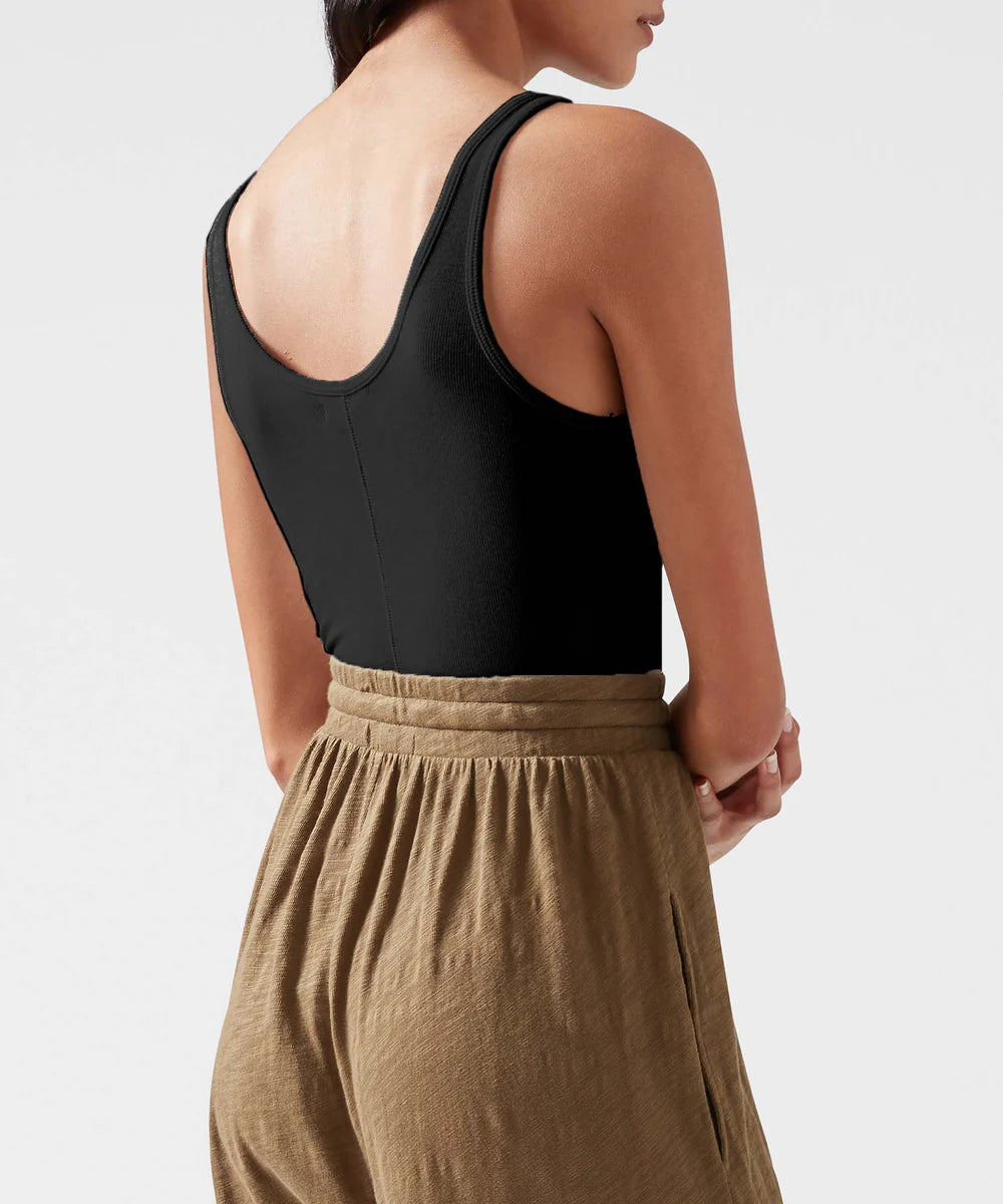 The Modal Rib Deep-V Tank Bodysuit features a double layer, featherweight construction, with a meticulously measured v-neck. The silhouette--armhole and neck--are thoughtfully cut to conceal any bra. The Micro-Modal yarn, made in Peru on a machine used only by ATM, is inimitably soft. It is the ultimate everyday basic that molds to the body like a second skin.