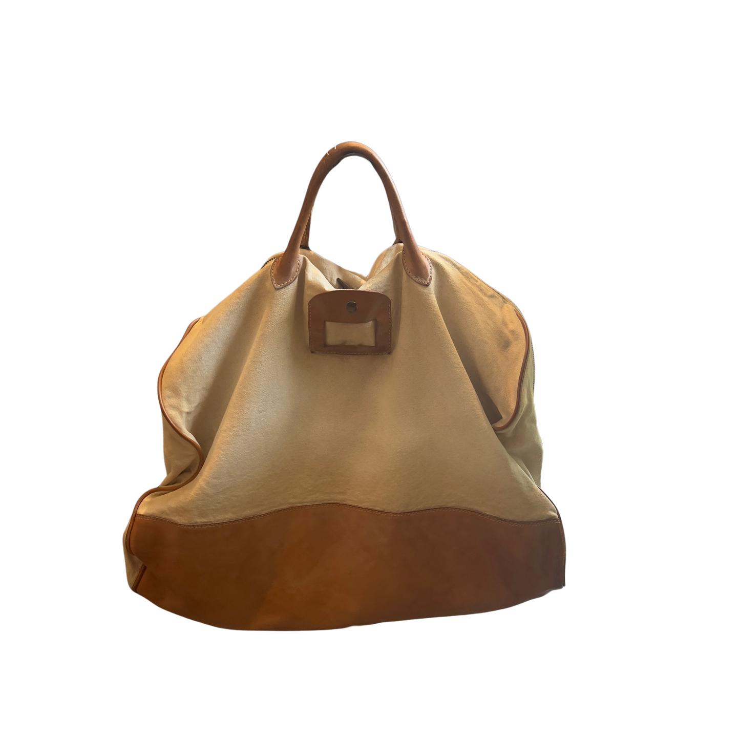 Crafted for elevated escapes, this two-tone travel bag from Numero Dieci blends refined textures with artisanal ease. Made from supple lamb leather contrasted by sturdy cowhide accents, it strikes the perfect balance between softness and structure. The removable crossbody strap lets you carry it your way—effortlessly chic whether tossed in the car for a weekend away or slung over your shoulder at the terminal. Spacious yet sleek, it's designed to travel well and age beautifully.