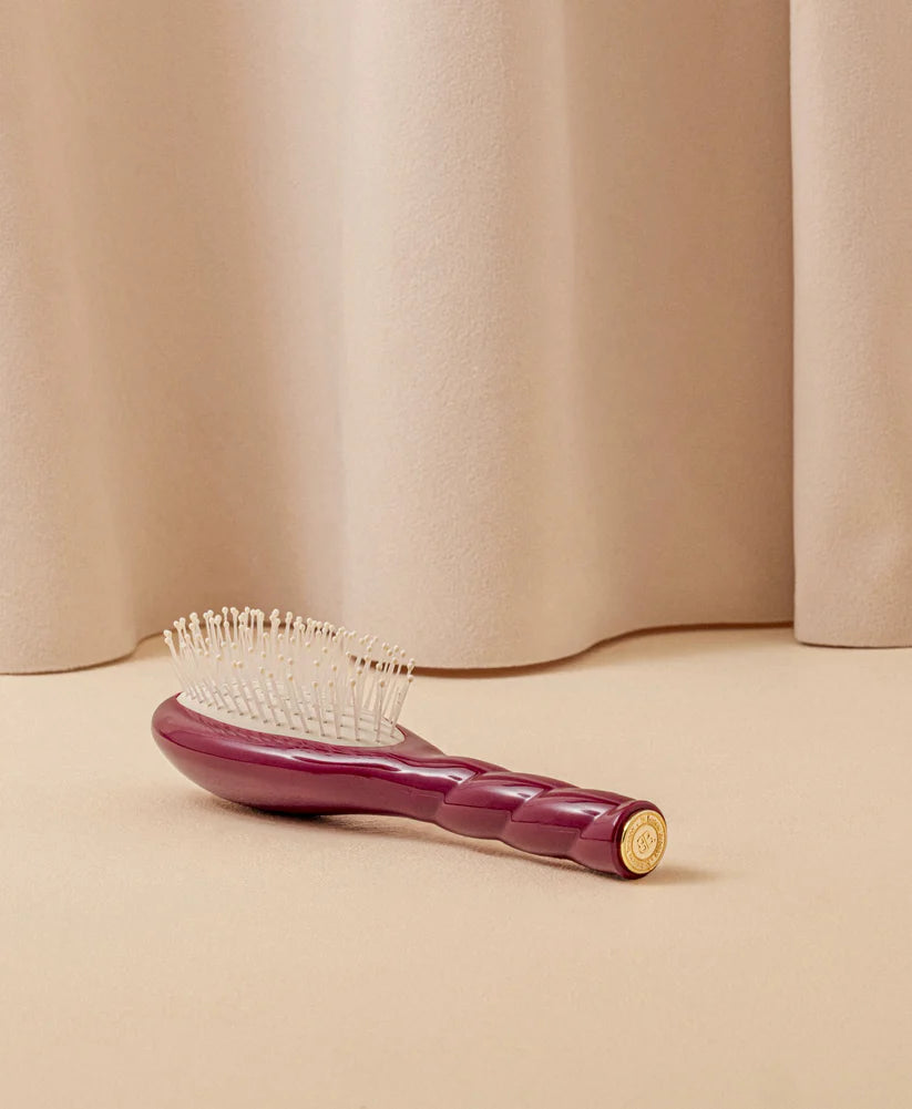A chic and compact detangling brush that elevates ritual with stylish efficiency. The Petite N.04 features soft nylon fibers and epoxy-tipped balls nestled in ultra-flexible rubber—designed to gently unknot strands while massaging the scalp. Its ergonomic silhouette fits in your hand or handbag, making it a refined companion for on-the-go grooming. The vivid cherry-red finish adds a signature pop of Parisian elegance to your daily routine.