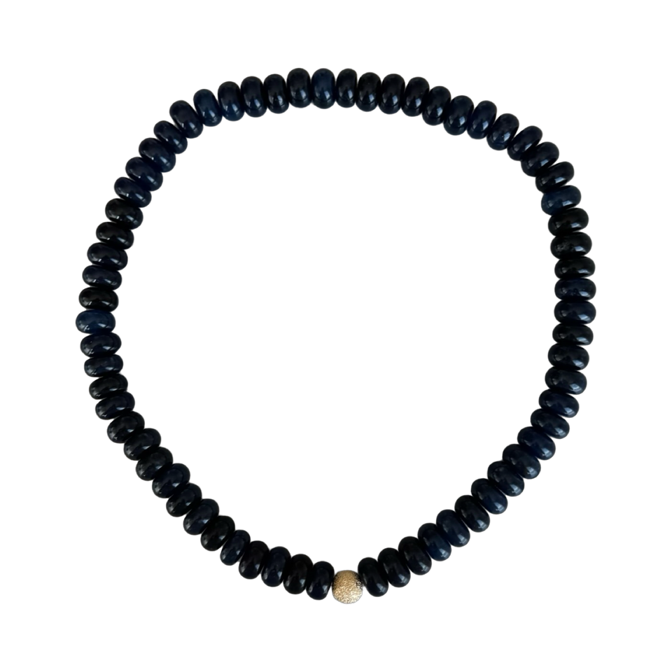 One-size-fits-all Necklace crafted on a durable elastic thread, featuring semi-precious stones and 18k gold-plated bead. Can also be worn as a double wrap bracelet.