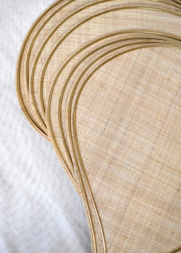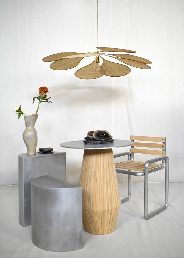 The stunning Pale Precious Pendant Light combines fabric and brass in its design. This unique light fixture is handcrafted at the chateau de Méritein in Béarn, France and features handmade petals made from a brass hoop and hand-painted with natural pigments on a cotton butter cloth. All materials for the Pale Precious Pendant Light are sourced in France. Available in S 80 cm and M 120 cm sizes with an E27 socket (75 watts maximum). It also includes a 3cm high and 12cm wide golden metal rosette for easy ceiling installation. Bulb not included.