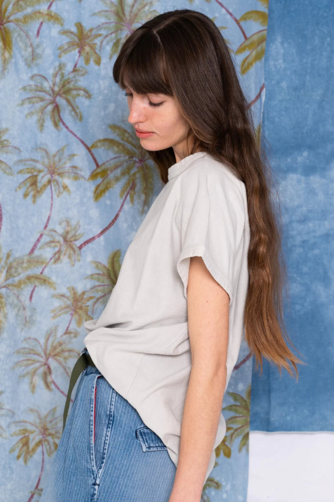 This cap-sleeve tee fits like the classic Model T but with no sleeves, offering a looser, relaxed silhouette. Finished with clean self-knit trim at the neck and armholes for subtle detail and comfort.