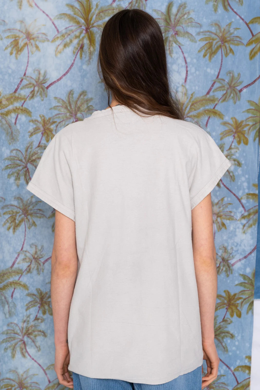 The Palm Springs T blends sustainable materials with vintage vibes. Made from organic and recycled cotton, it’s hand-dyed using a special plant-based medicinal dye process for a naturally aged, worn-in look.