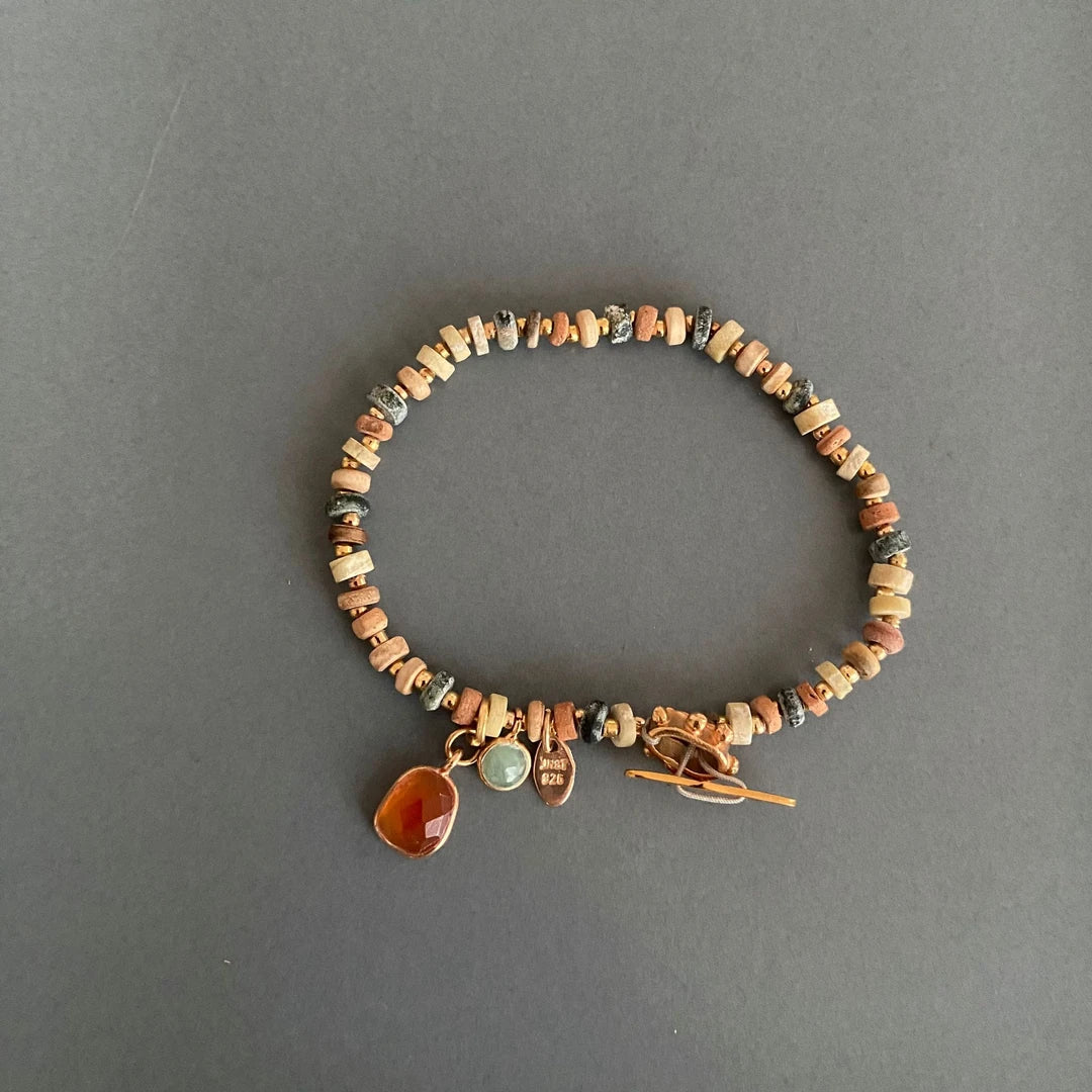 24k Gold plated sterling silver and bronze, agate, tourmaline, antique stones.