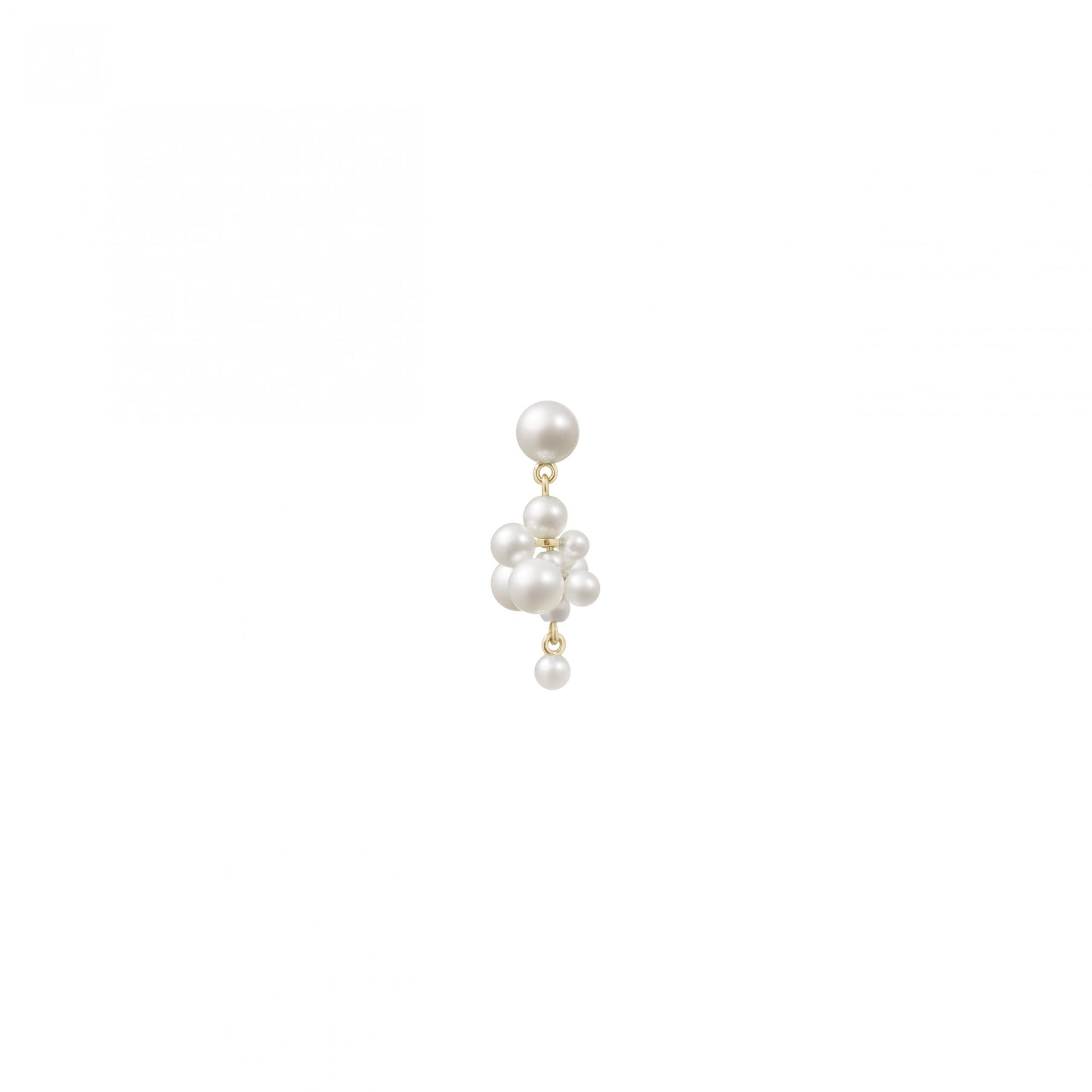 This petite celli earring by Sophie Bille Brahe is inspired by the classic botticelli earrings. A 14k yellow gold that features a cluster of freshwater pearls in different sizes.