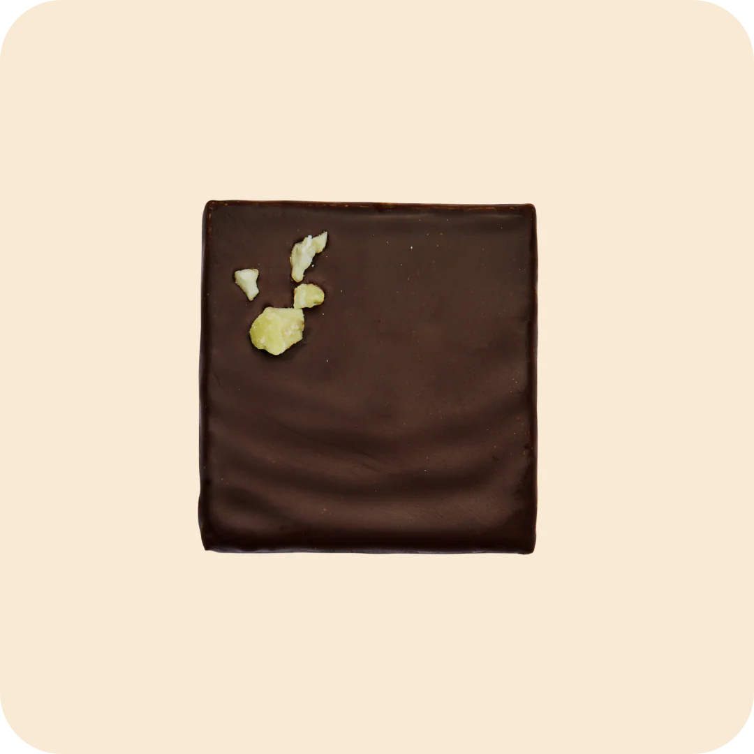 Our nut butter chocolates have, on average, 80% less sugar content than your regular chocolate bar. We do not compensate by using fake or synthetic alcohol sugars or cheap industrial tricks that are worse for you than actual sugar. We only use a sprinkling of dates (2 g or less per chocolate) for a hint of natural sweetness that's low GI and without the sugar spikes. We also use the highest quality organic ingredients and stick to short ingredient lists: they are simply natural nut purées, infused with herbs, plants, flowers, and fruits, and enrobed in artisanal chocolate. Our single-origin chocolate is made bean-to-bar in France and sourced ethically from a cooperative in Ecuador. Our supply is completely traceable. Nut butter and dark cacao form a combination naturally rich in protein, magnesium, polyphenols, and healthy fats.