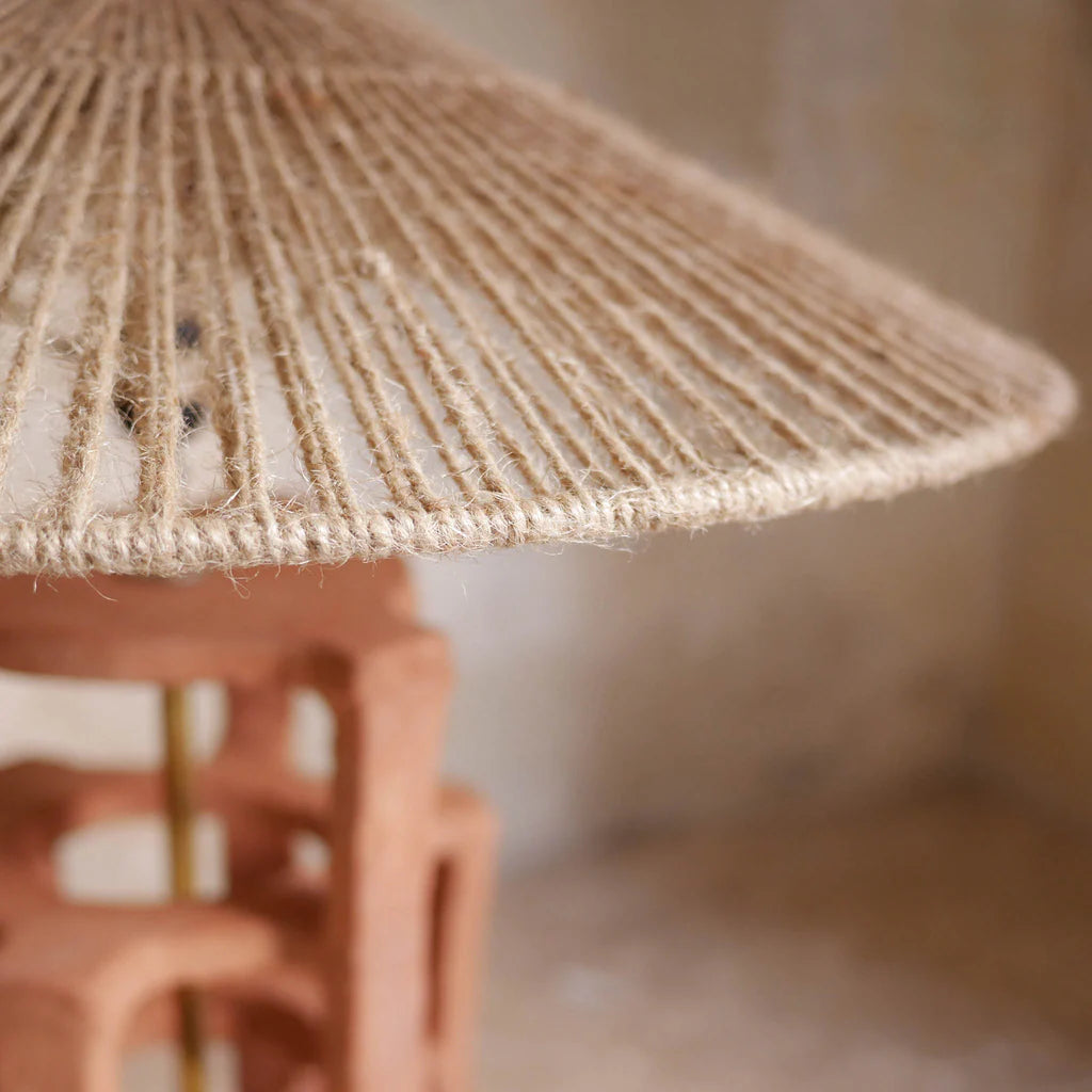 The shade is fashioned in the style of a traditional Chinese hat and its natural fiber weaving gives it that unique Honoré look.