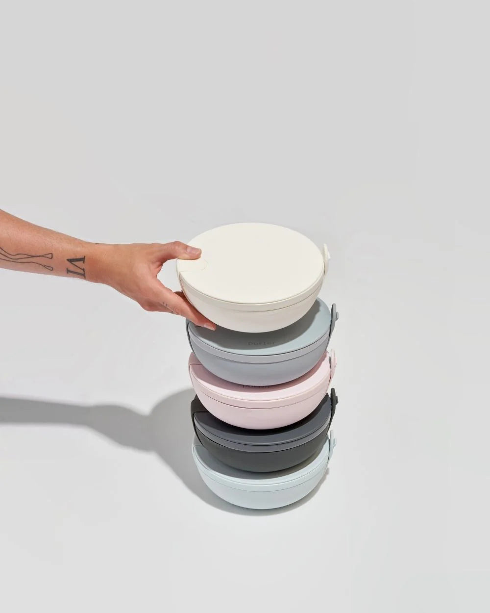 Meet your new lunch companion—sleek, sturdy, and effortlessly stylish. With a 1-liter capacity and silky ceramic core wrapped in protective silicone, this bowl is perfect for everything from grain bowls and salads to pasta—and it can safely warm your food in the microwave or chill it in the fridge. The rigid lid snaps tight with a silicone strap, making on-the-go meals easy (as long as you carry it upright—this one isn’t fully leakproof)