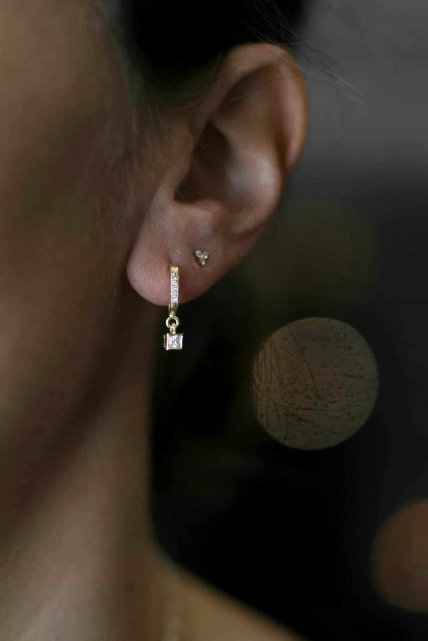 18K Solid Yellow Gold with 4 x 0,005CT Top Wesselton VVS Diamonds and 1x 0,10CT [0.12CT] Approximate Measurements Length 1,07cm Diamond: 0,3cm x 0,3cm