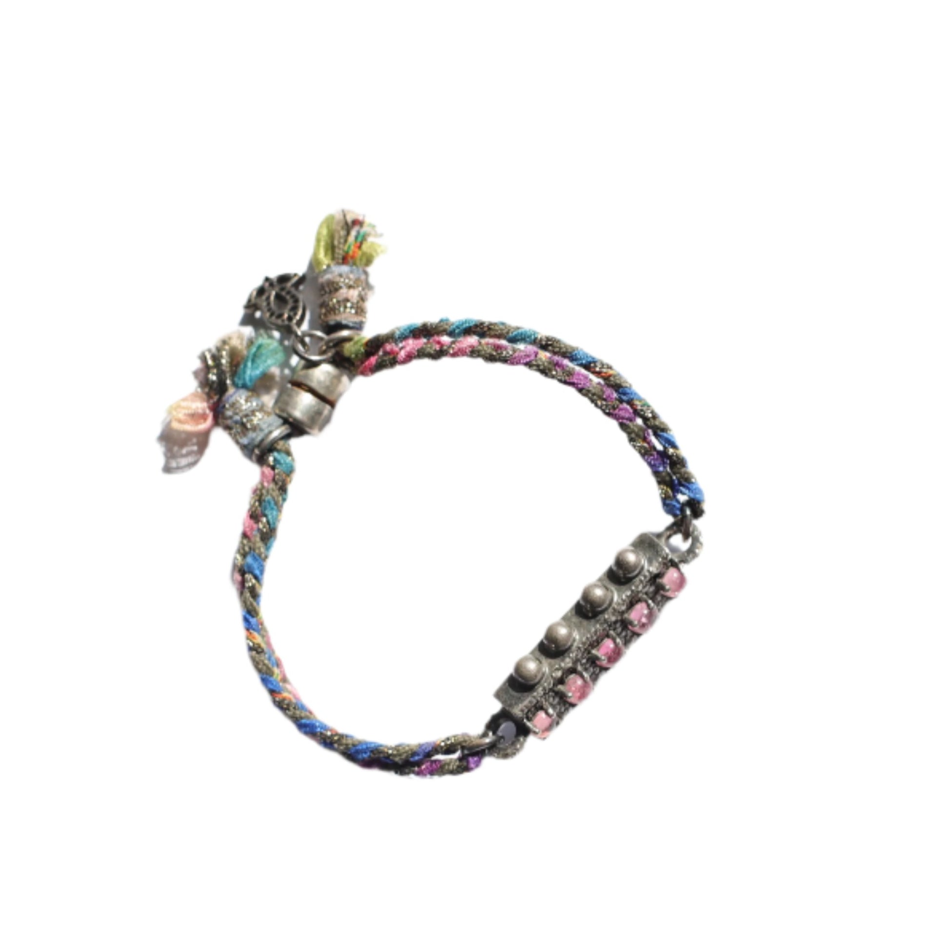 The Ruby Bar Bracelet features stunning rubies set on a chic sterling silver bar. it has a woven cord and a magnetic clasp.