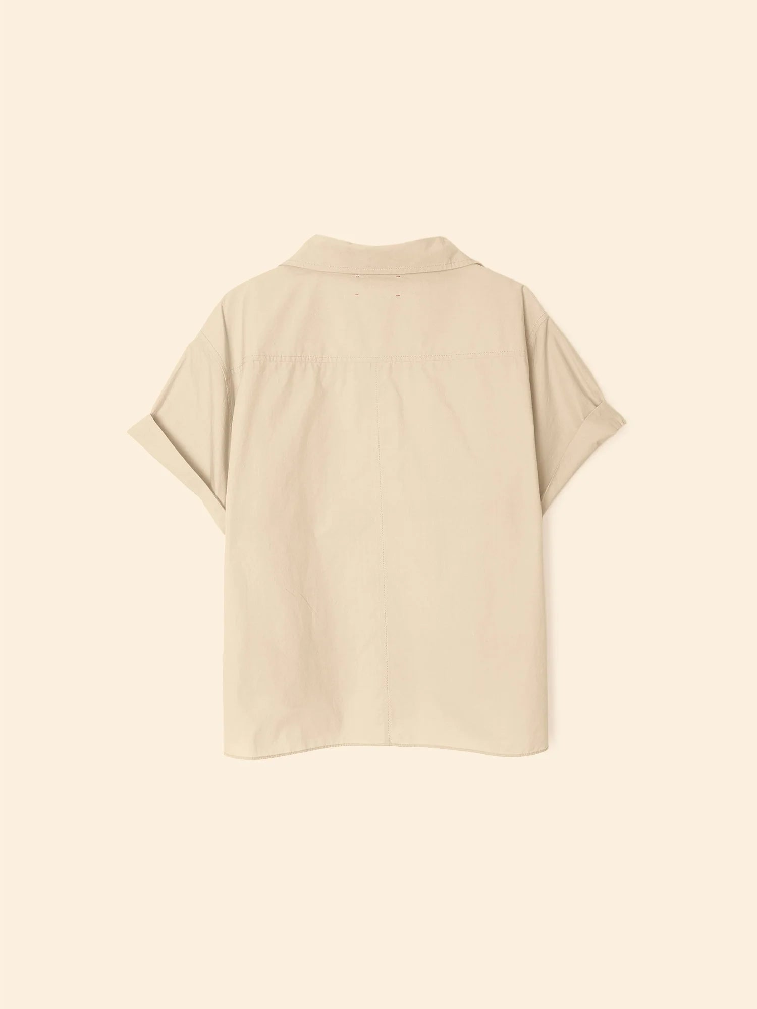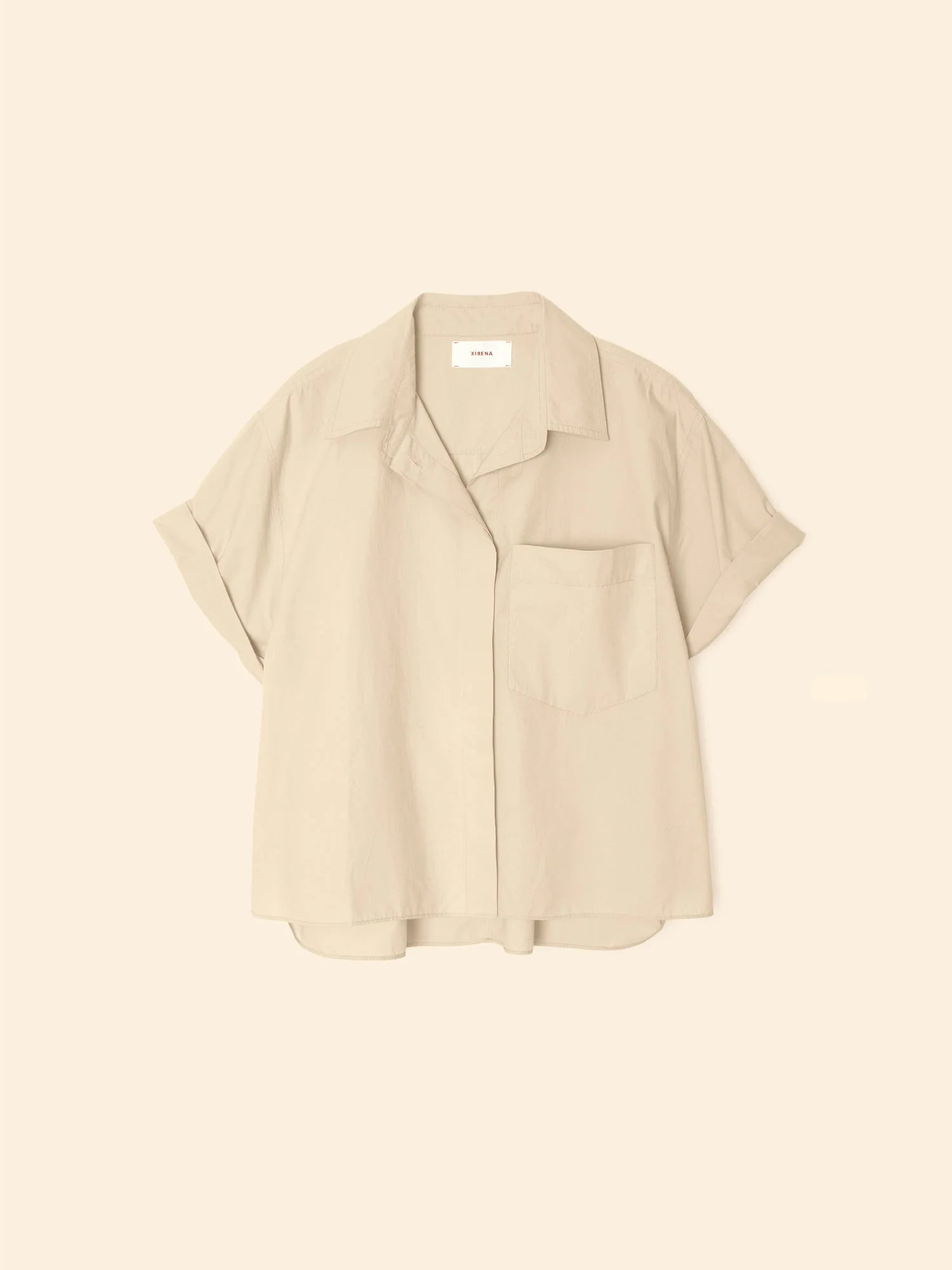 Xirena's Drake shirt is crafted from a fresh and crisp paper poplin, providing a sleek and polished look. It proudly boasts a concealed closure, cuffed sleeves, a pocket on the left chest, and a unique hemline that's longer in the back.