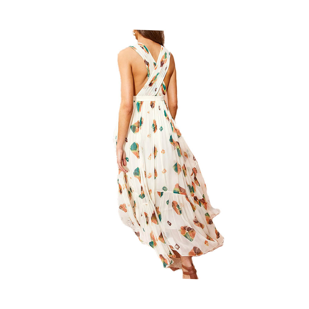 The Sarai Dress is cut in a stunning diaphanous silk chiffon. Crafted in Ulla Johnson's cream and multicolored floating shibori print, this flowing dress has a handkerchief midi-length hemline, a fixed waist and a criss-cross back. It is finished with a side-seam zipper.