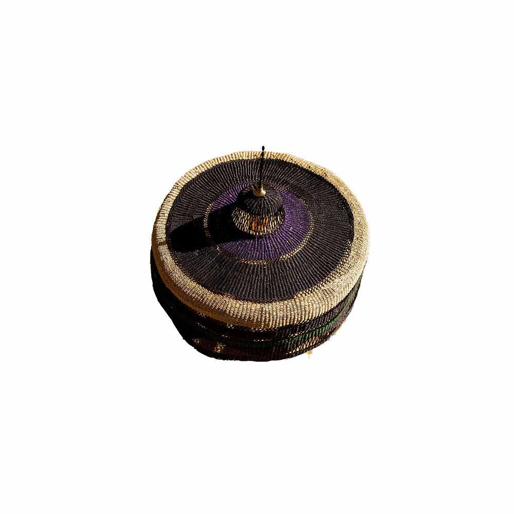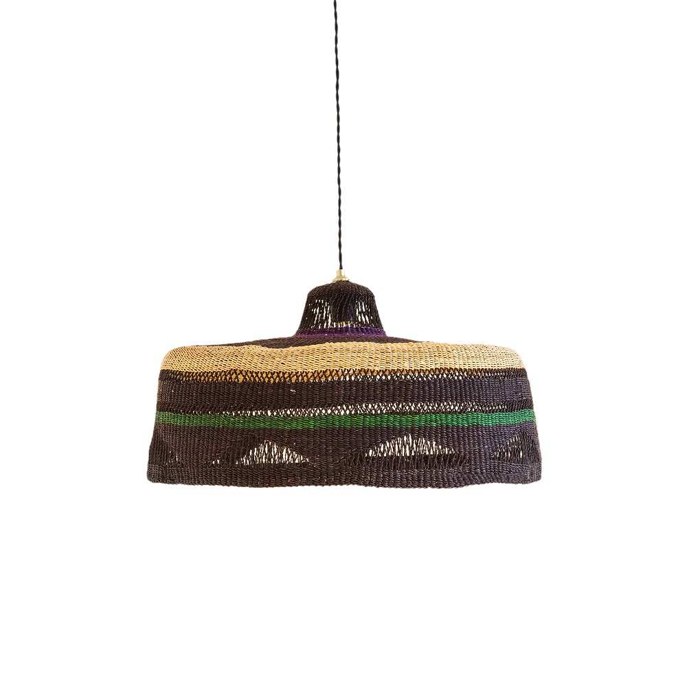 Woven with the grass Veta Vera, which is naturally durable. This large pendant lamp in natural and black is magnificent above a dining table, in a bedroom, in a living room or hallway. This pendant light is perfect alone or accumulated with other lamps in the collection. Basket weaving from Bolgatanga is a a traditional African weaving technic. The grass Veta Vera grows locally. The reeds are twisted by hand and small batches are colored using vegetable or food dyes in cauldrons. The weaving is tight and smooth. The lamps are woven by an association of weavers, these weavers have honed their art to make our contemporary shapes. This lamp takes 5-6 days to weave. Golden Editions believes that artisanal is the new luxury.