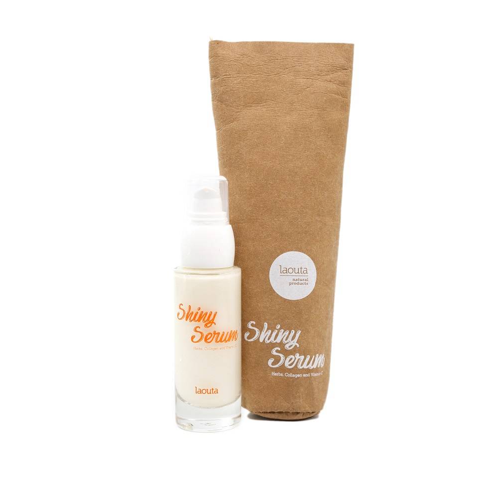 Laouta’s Shiny Serum is a 98% natural, vitamin-rich illuminating cream‑serum handcrafted in Greece to deliver a soft, lit-from-within glow. Infused with antioxidant-packed sea buckthorn and vitamin C to boost radiance and collagen, nourishing oils like oatmeal, abyssinian, helichrysum flower, plus bio‑marine collagen and vitamins D, E & F, it deeply hydrates without greasiness. Squalane ensures optimal absorption, while mica adds a subtle pearlescent finish. Smooth on a pea‑size over clean face and neck, alone or mixed with foundation for a dewy veil—perfect for all skin types, even oily.