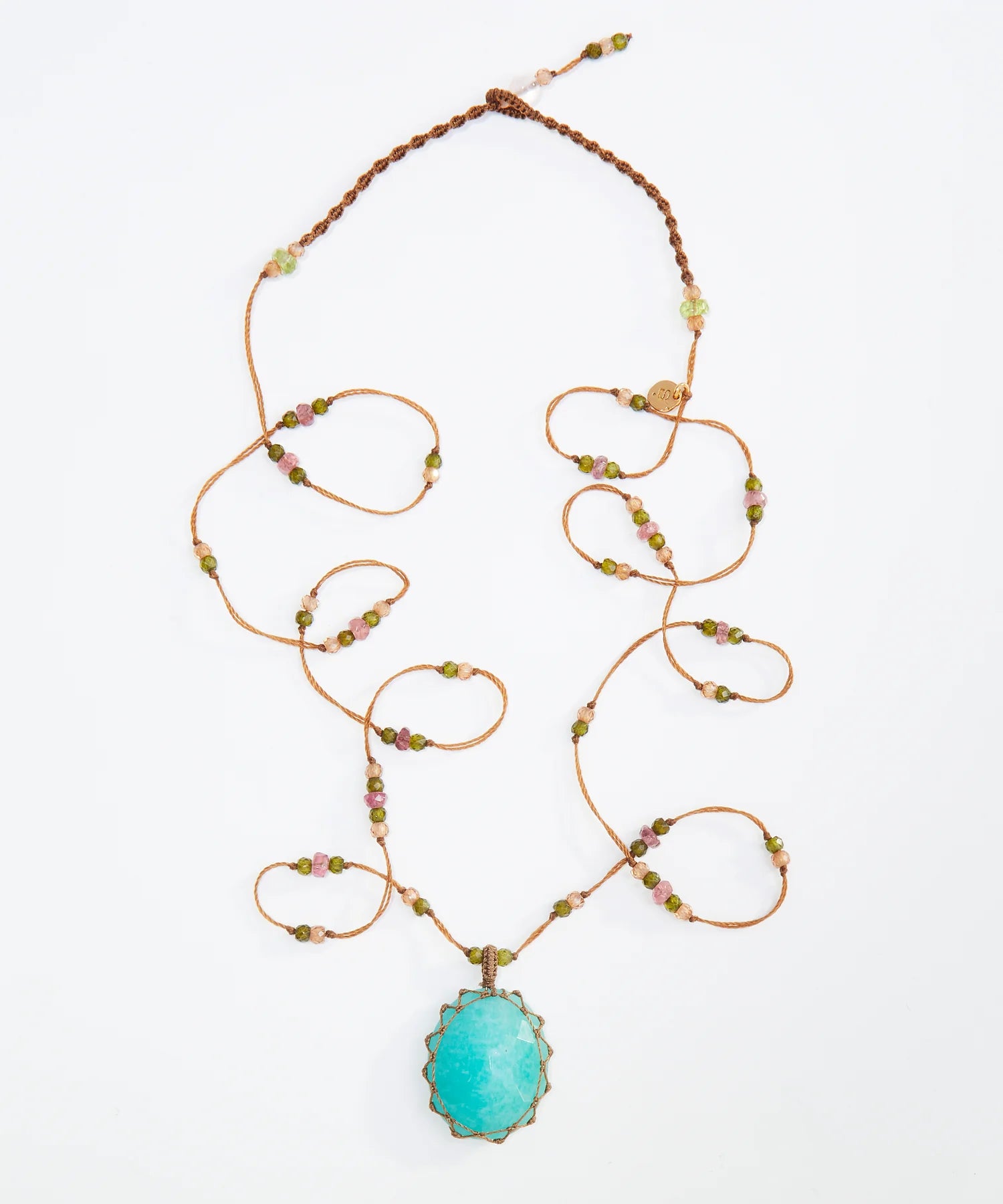 Shimmering blue Amazonite pendant on a strong wire, paired with vibrant tsavorite beads.