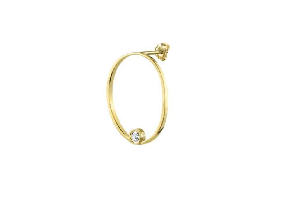 Sleek Oval Silhouette Earrings by Gabriela Artigas in 14k yellow gold features a sleek oval silhouette with single diamond uniquely placed on the inside4 of the earring.