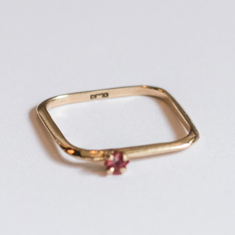 10k yellow gold Square Red Sapphire Ring by Oljei