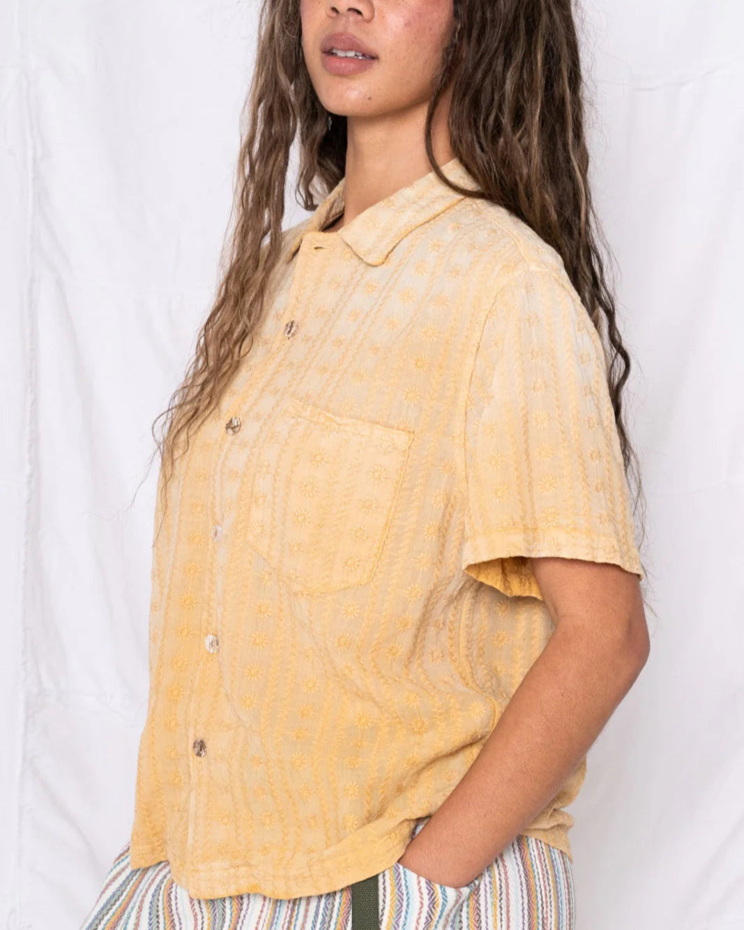 Effortless vintage vibes in a super soft, lightweight sunflower jacquard fabric. The St. Tropez Shirt is crafted with a relaxed, loose fit and finished with a signature sunfaded wash for that naturally aged, faded look.