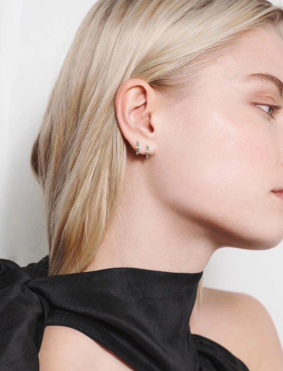 Hope Mini Hoop Black Gold Diamond & Emerald