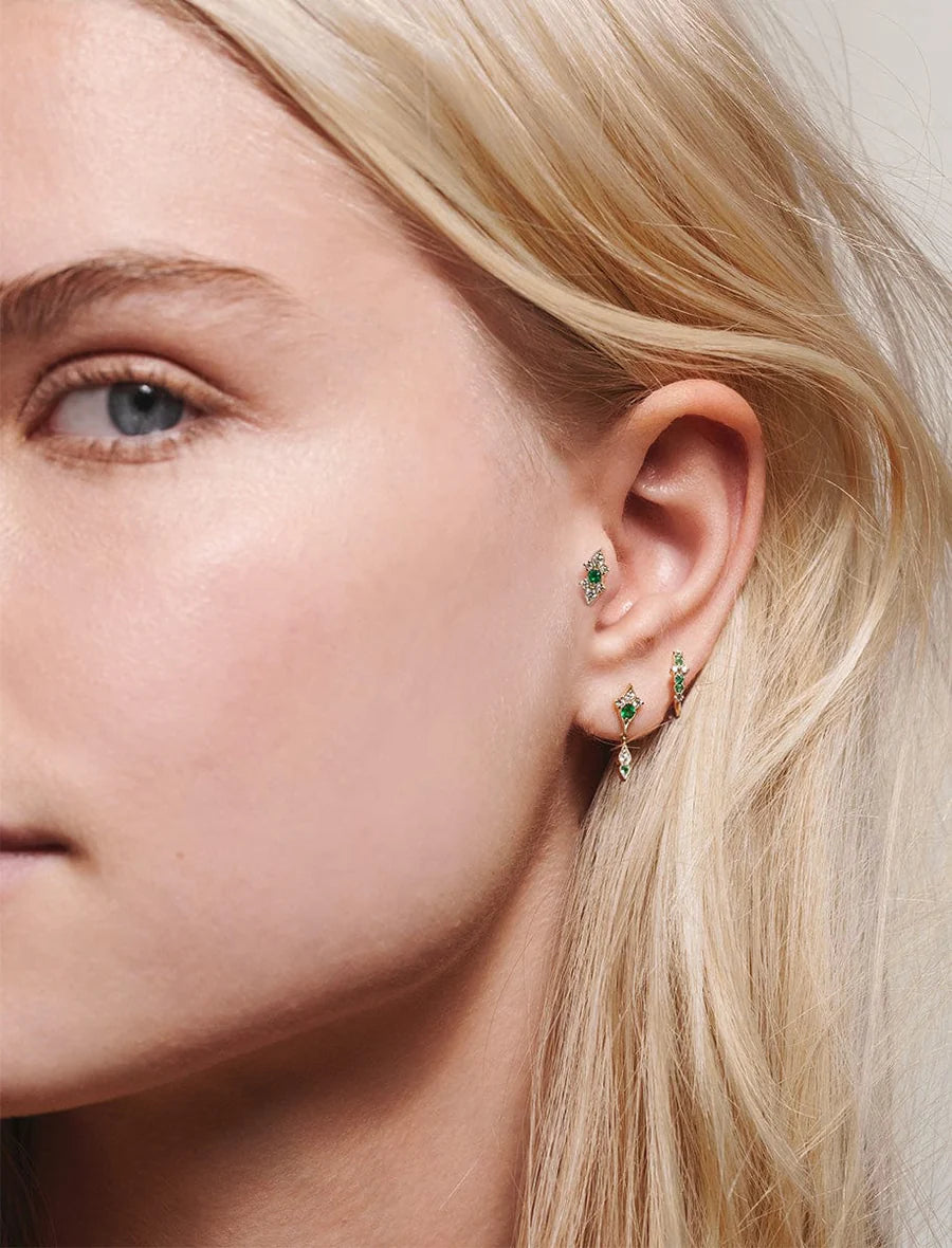 The Hope Mini Créole by Stone Paris is a whisper-bold statement: a refined hoop that transforms classic jewellery into something poetic. Crafted in 18k white gold, this earring features a circle of emeralds—signature to the Hope line—alternating with G-VS white diamonds. Its petite size gives it quiet elegance, flattering in its contrast of precious stones and minimalist hoop form. Designed to punctuate without shouting, this is a piece that feels personal, meaningful, and timeless.