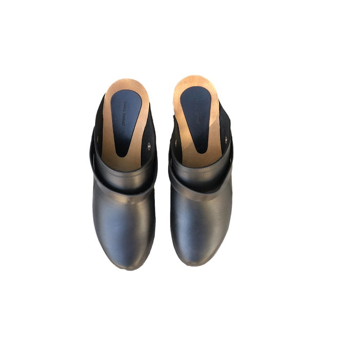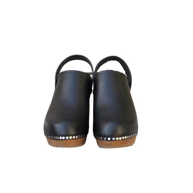 Taiya from Isabel Marant is women's clog with a backstrap. This one comes in Black color which gives it a professional style yet classy. It also has a pattern of silver studs alligned on the plain black leather which stands out on its own. It has a wooden heel and foot bed. Match these clogs with a pair of pants and a tunic top, add a handbag or belt to complete your outfit.