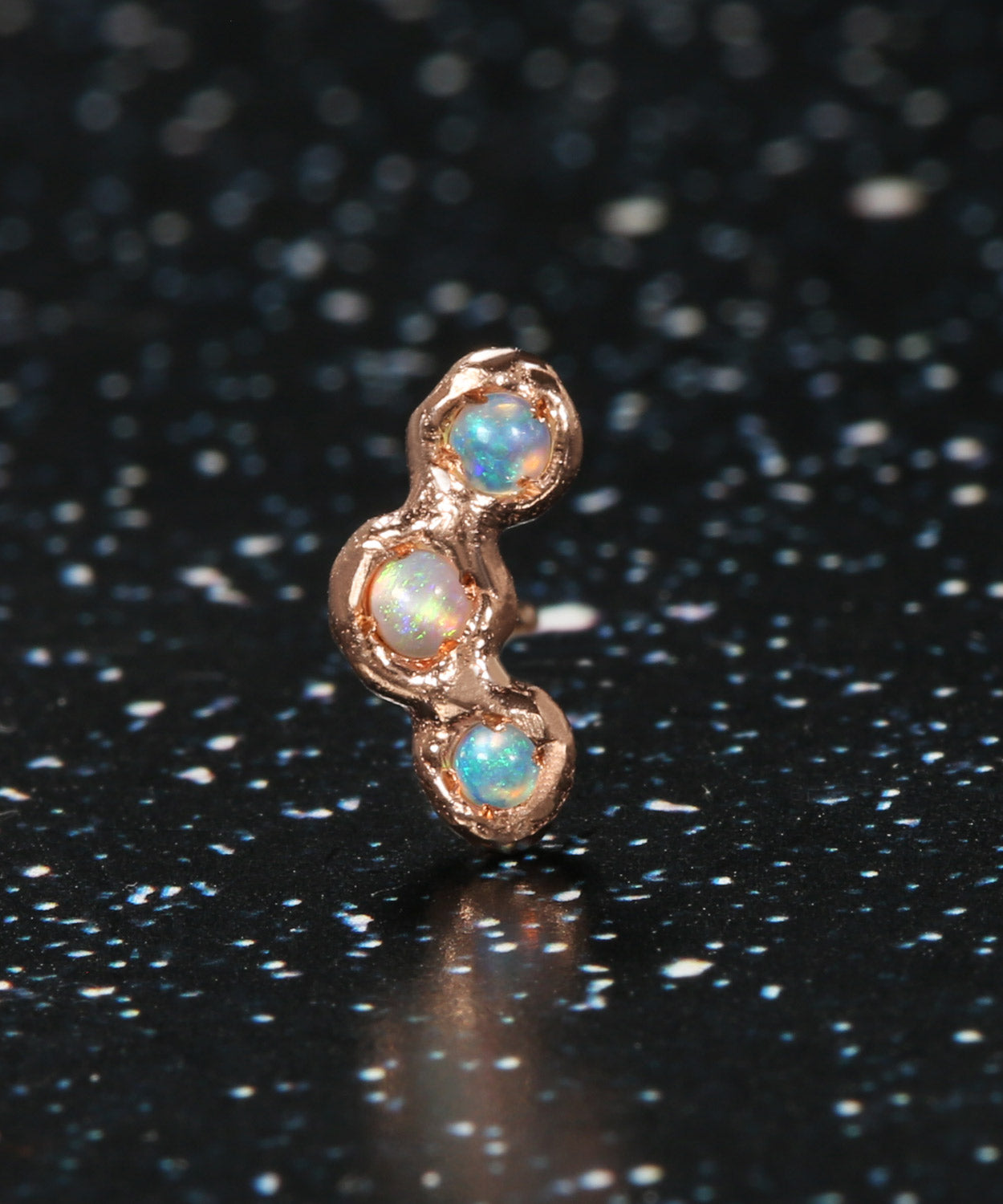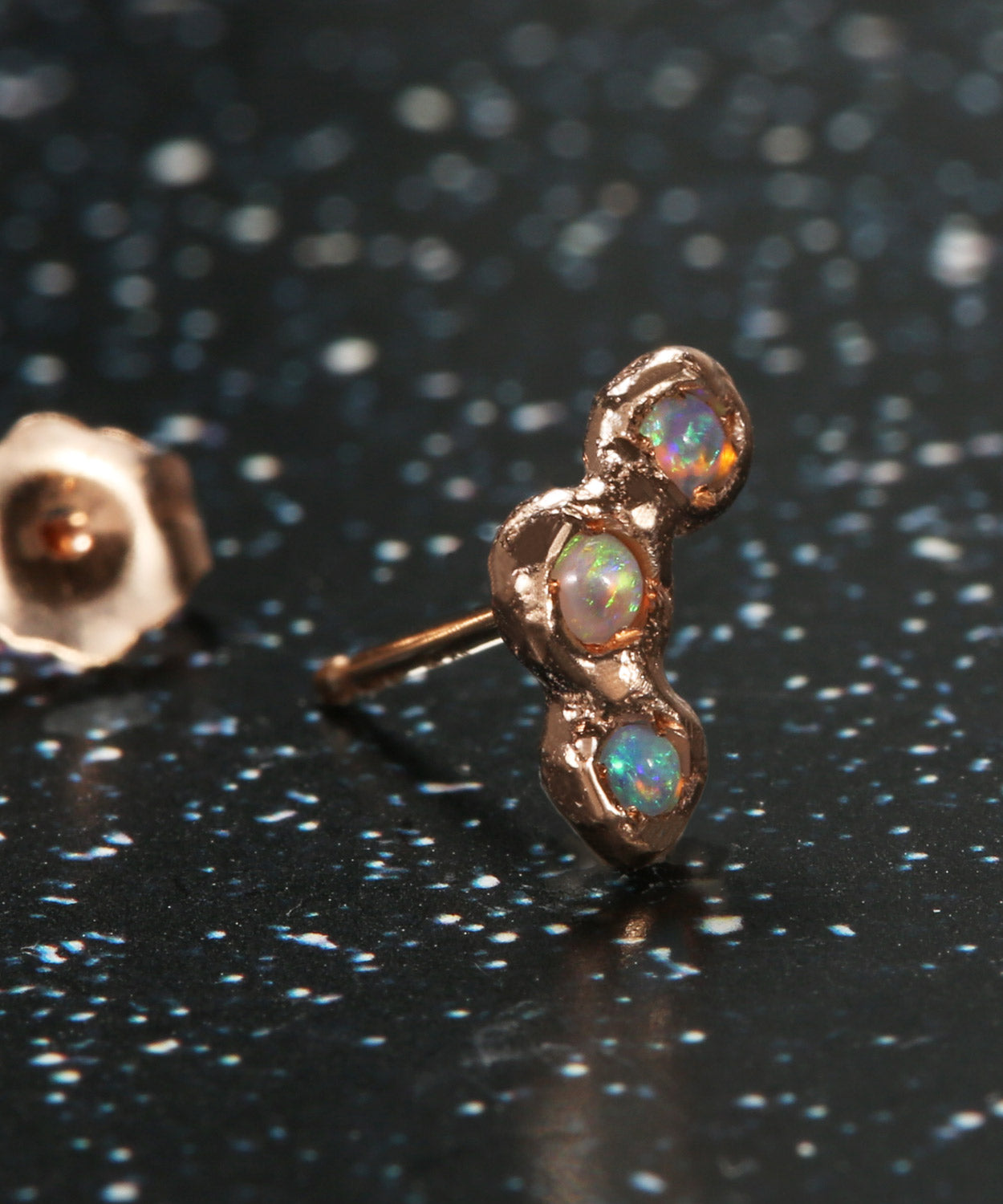 Little flashes dream its way out of this tiny opal trio. Like a romantic journey this earring will help you navigate space time.