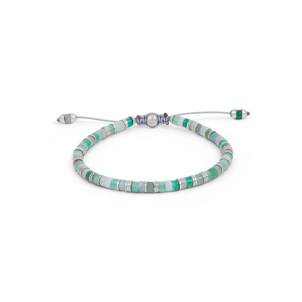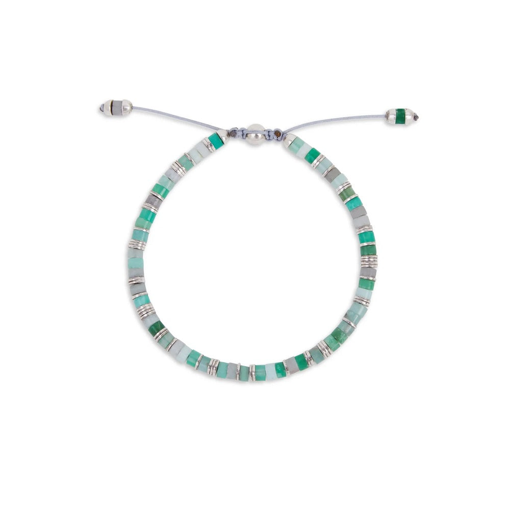 This new twist on classic M.Cohen design gives new life to the beaded bracelet. A more elevated direction thru polished 925 sterling silver, and here combined with chrysoprase gemstone, the Tucson bracelet is expertly crafted to elevate any stack of complementary pieces.