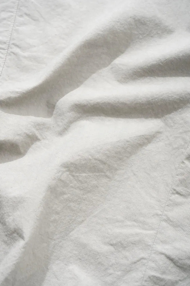 The Uniform Painter Pants reinterpret classic workwear with a soft, easy silhouette and a distinctly textured finish. Made in Japan from 100% organic cotton, the fabric is woven to create natural unevenness and then garment‑dyed for a subtle, lived‑in depth. The rounded front pockets and painter‑style side pocket add character without overwhelming the clean design. A drawcord waist ensures a comfortable, adjustable fit, while the lightweight dump cloth gives the pants their signature wrinkles and relaxed drape. Designed as a unisex style, they can also be paired as a set with the matching jacket.