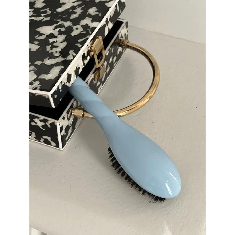Soft and non-aggressive, the Light Blue Universal Petite Brush is suitable for all types of hair: curly hair, frizzy hair, dry hair, sensitive scalp... Because it cleanses the hair of all impurities, it allows you to reduce the frequency of your hair washes: your hair is less greasy and stronger! If you have curly or voluminous hair, we advise you to use the boar bristle hair brush in the evening to avoid breaking your curls. If you have fine hair, we recommend brushing your hair in the morning, massaging it from the temples to the back of the head, then from the top of the head towards the nape of the neck.