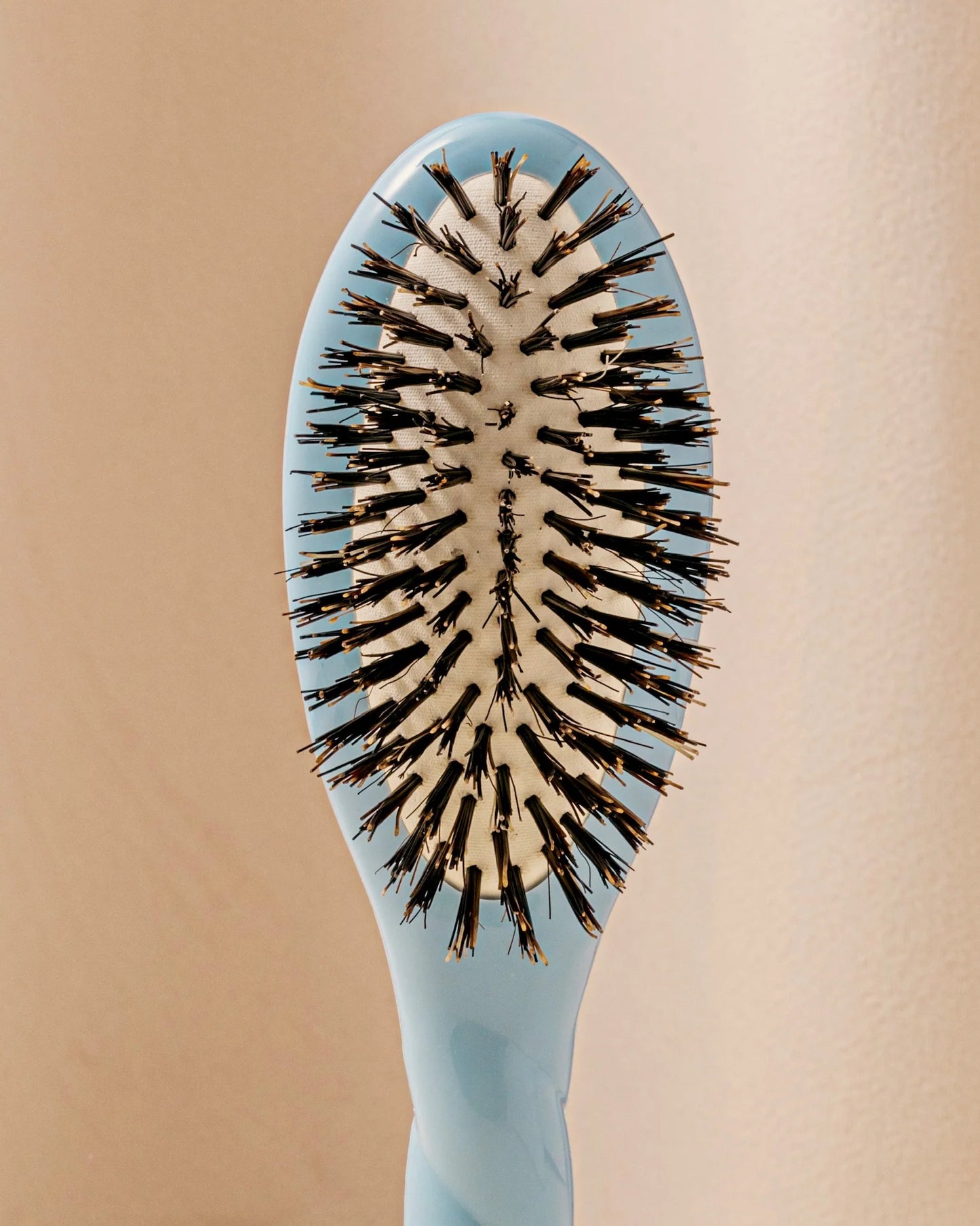 The fibers of the Light Blue Universal Petite Brush are made from boar bristles and contain keratin. Because keratin is also the protein that is in your hair, it leaves the hair fibres well nourished and hydrated. Say goodbye to static! You've probably noticed the irregular placement of the boar bristles: this allows the boar bristle brush to detangle your hair deep down while providing a regenerating massage. The Universal Petite Brush is the ultimate detangling brush!