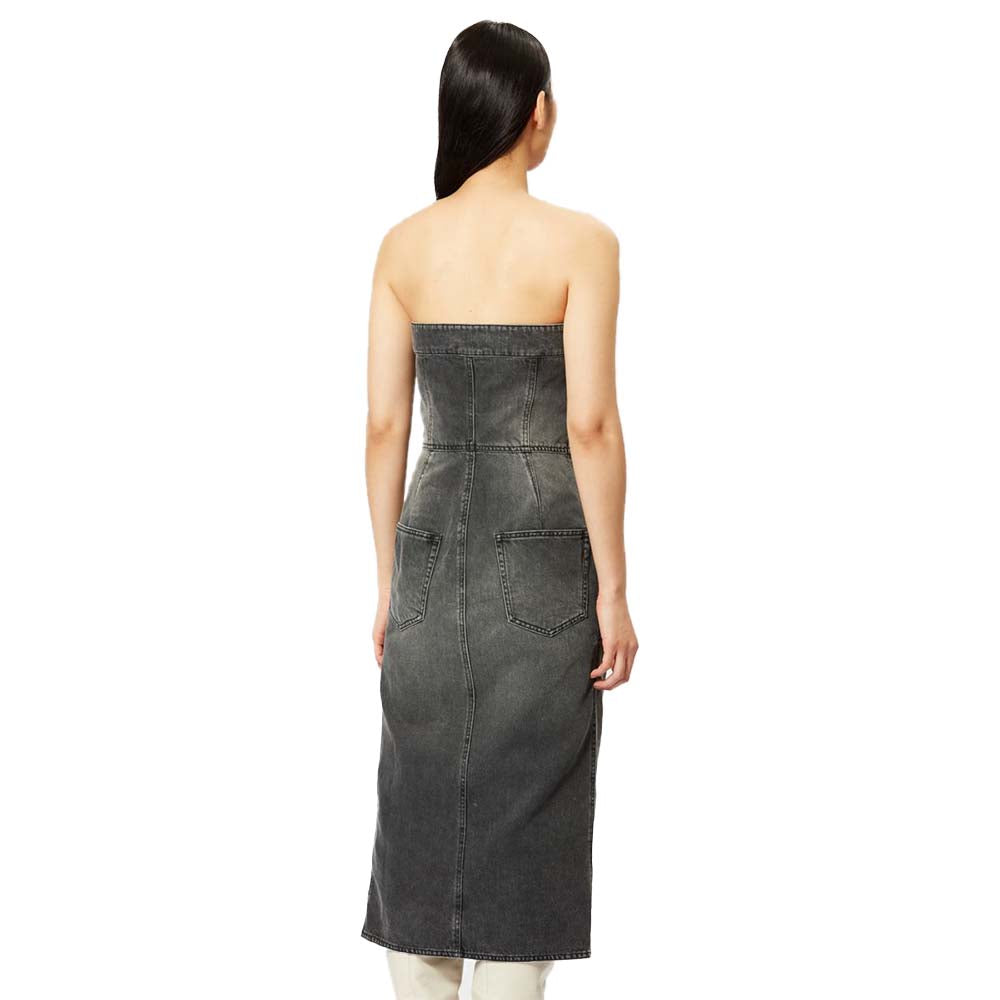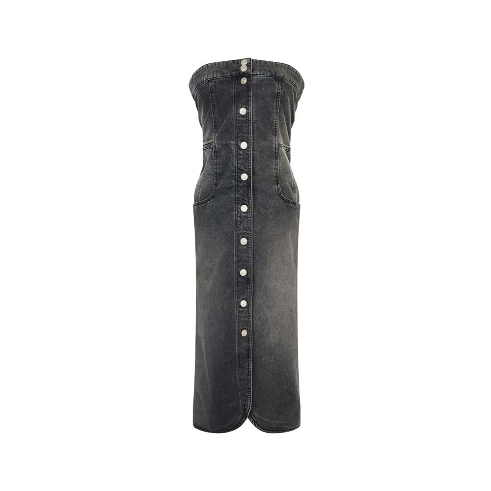 Valentine Dress from Isabel Marant is a Black denim dress without sleeves. It has a Button closure at front.