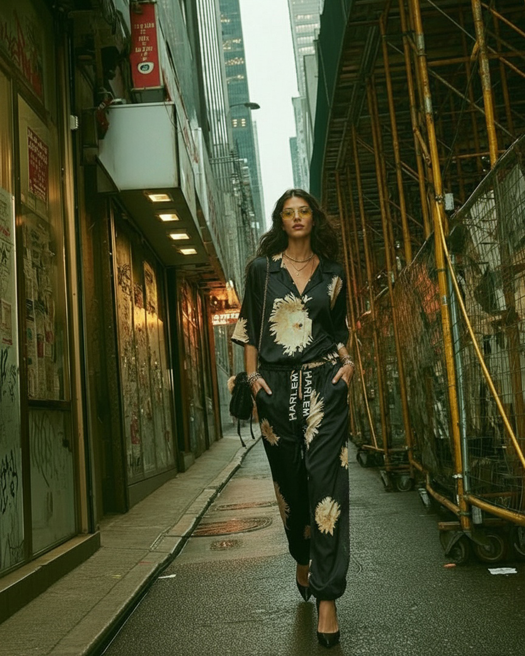 The Voyage 102 Tourist Shirt takes the brand's popular relaxed short-sleeve silhouette and reimagines it in the striking Dahlia Black Print. Crafted from luxurious, smooth silk, this top features a comfortable, slightly oversized fit and a casual open collar, reminiscent of classic vacation shirting. The bold design features large, abstract yellow floral motifs set against a deep black base, giving the shirt a sophisticated yet exotic aesthetic. This new print iteration makes the Tourist Shirt a standout piece, perfect for pairing with trousers or shorts for an elevated resort look.