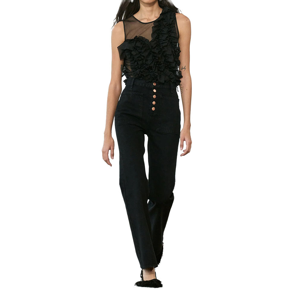 The Winnifred Top is made from Ulla Johnson's translucent frills knit, a sheer top adorned with a strategically placed explosion of fluttering frills across the bodice.