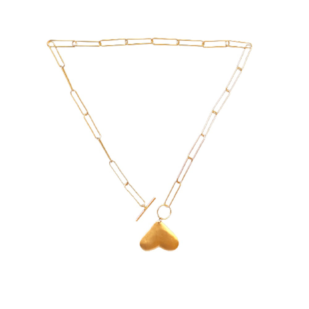 You & Me by Par Coeur is an upside-down heart pendant in vermeil with short chain XL links and T clasp.