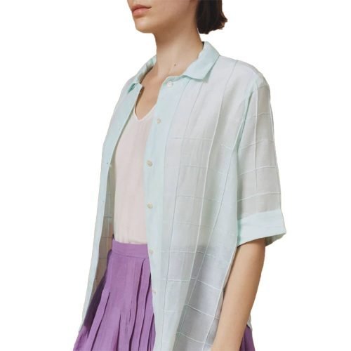 The ZOUK simple shirt will give you a Tom boy look. Crafted here in a soft cotton silk fabric, the pintucked check pattern has been engineered and created exclusively for the brand.
